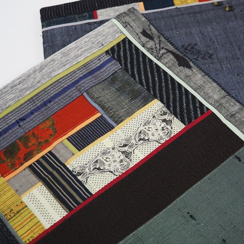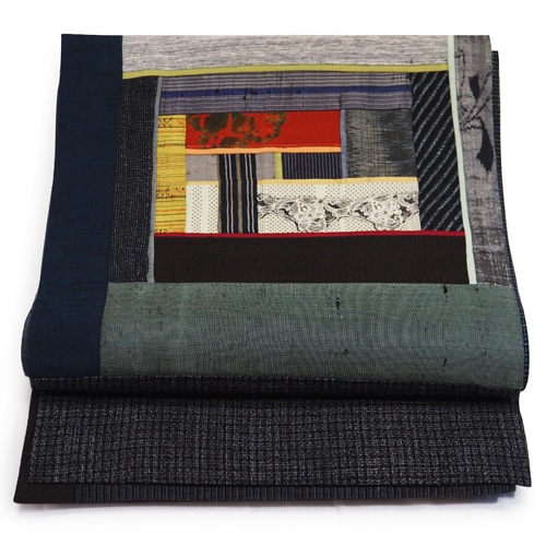 トップ > 帯 > 京袋帯 > 京袋帯_紬のパッチワーク帯