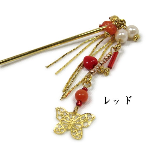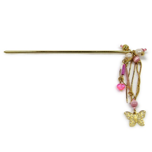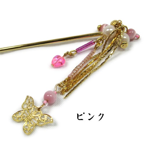 蝶々と小さなハートのビーズが揺れる可愛いかんざしです。