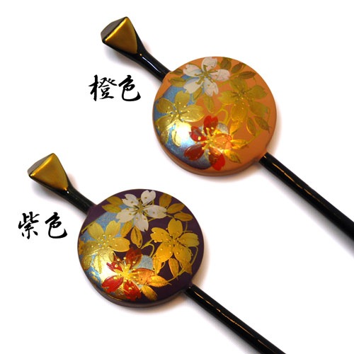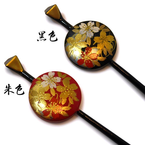 桜の絵がついた塗りの平かんざし。