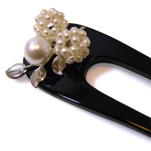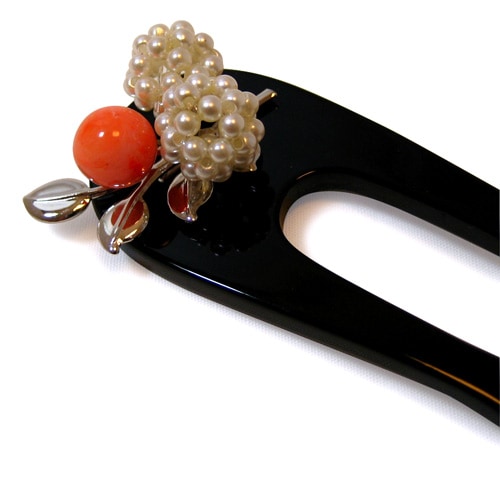 珊瑚とパールの角かんざし。