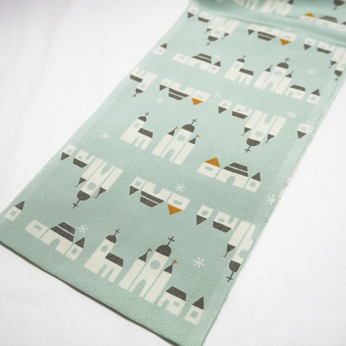 塩瀬生地に北欧風の街並み柄が可愛い半襟です。正絹でこの柄は珍しいのではないでしょうか。優しい色合いで襟元を彩ってくれます。ちょっと冒険してみませんか。