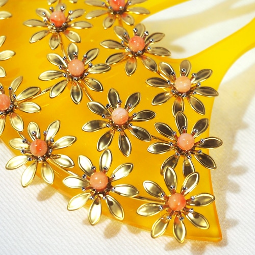 鼈甲風のバチ型のかんざしの上に花をたくさんあしらった豪華なかんざし。