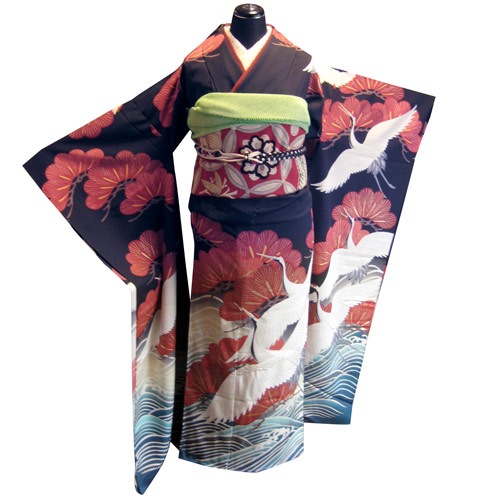トップ > 着物 > 振袖 > 黒地に松鶴柄振袖 成人式 > 振袖 > 黒地に松鶴柄振袖